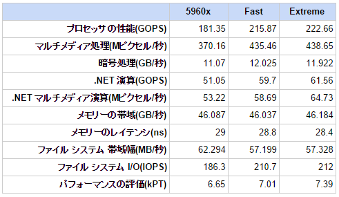 という感じで、定格から Fast や Extreme でOCする効果は大きいと思いますが、Fast と Extreme を比べた時にどの程度の差があるのかは微妙かなと感じます。