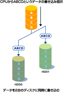 一方のディスクが故障しても、もう一方のディスクからデータを読み書きすることができます。