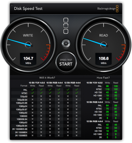 Macでのベンチマークテスト(Blackmagic Disk Speed Test 2.1)を実行してみました。
