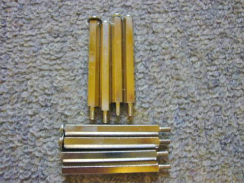 本製品と両端がM3メスネジの六角スペーサとワッシャーとボルトを利用します。