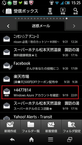 ※ ショートメールが着信した際に、迷惑メールフォルダを設定していると、そちらに振り分けられる事がありますのでちらもチェックしてください。