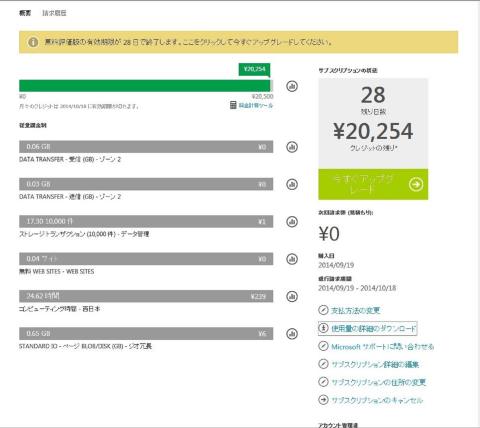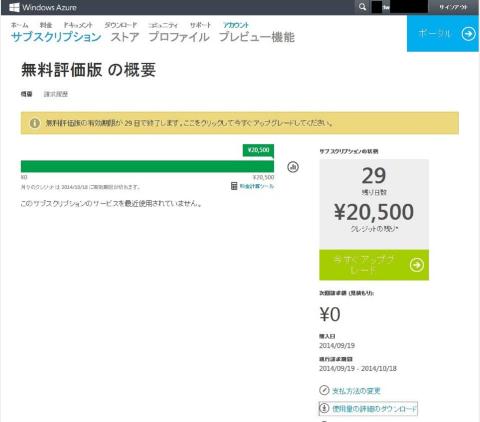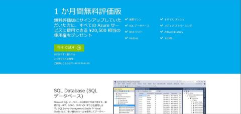この試用版では、20500円分約1ヶ月間にAzureの全ての機能やアプリケーションを試すことができます。