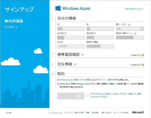 正式版のAzureに申し込むのは結構、金額がかかってしまいますが、今回は試用版を使用したレビューになりますが、出来ることは通常版と同じです。