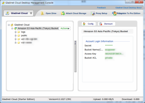 ストレージ、ディレクトリの設定をして、ローカルのWindowsPCでクライアントプログラム(サードパーティ製で、AWS以外にも同時につながる)を使うと、エクスプローラからS3のディレクトリがローカルドライブのように使用できます。
