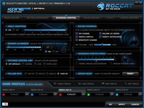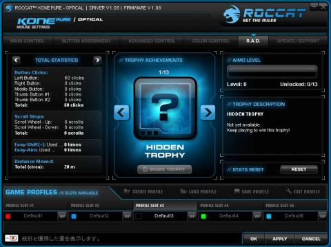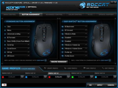 親指の2ボタンは一般的なのだが、この「Kone Pure Military」マウスはとても特徴的な機能に割り当てられている。