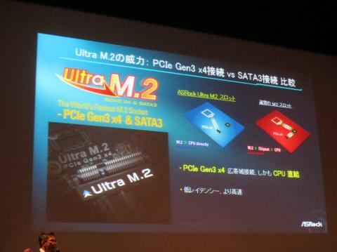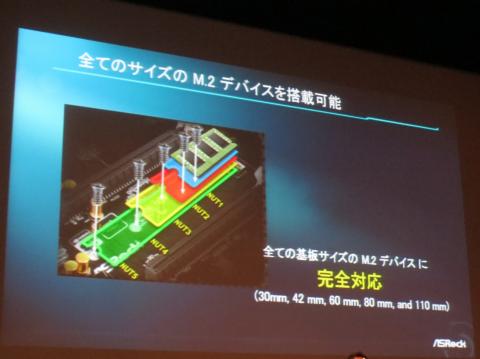 ASRockでは「ASRock Ultra M.2」となっていて、CPU直結で高速なことを謳っています。また、広めに場所を確保してあり、全てのサイズのM.2が使えるようです。サイズを気にせず使えるのは安心の一つですね。