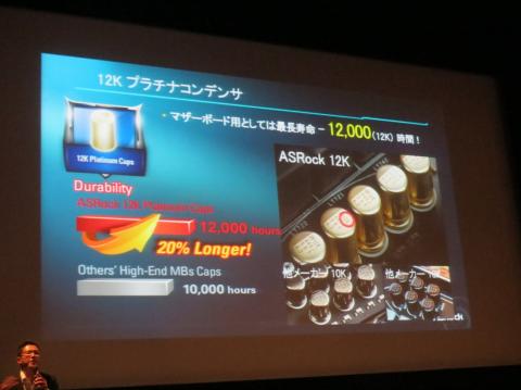 マザーボードの寿命を左右するコンデンサに 12000時間対応のコンデンサを使用したようです。従来比 20%UP! 20%も性能上がったと聞くと結構凄いかも。