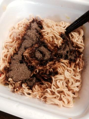 特製油でまぜたあと粉末ソースを投入。香ばしい。