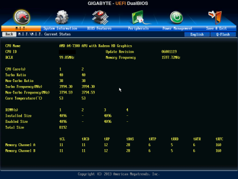 KaveriであるA10-7850Kが発売したころのBIOSですが、無事に認識しました。GIGABYTEのHPを見る限り、それ以降はBIOSがUPされていないようなので特に新しいBIOSである必要は無いのかも知れません。