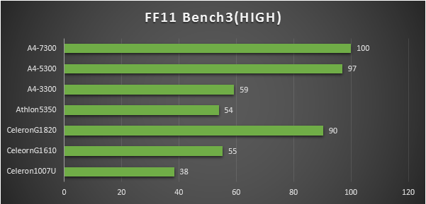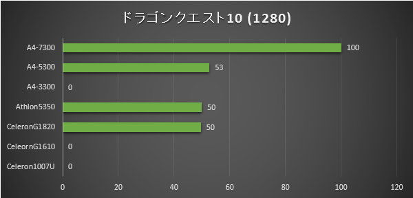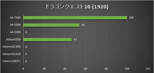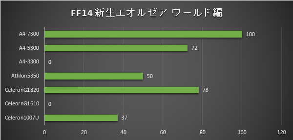 今回の比較対象の中ではダントツに性能が高く、Trinity世代のA4-5300と比較しても20~30%の性能向上が見られます。ドラクエ10では50%も上がっていますが、これは2014年4月頃のAPUのドライバで同ソフトに最適化された為です。(イベントでAMDの中の人が言っていました)このクラスならほとんどの3Dゲームの解像度を1280×720にすればとりあえずプレイは可能なレベルだと思われます。ドラクエ10用のAPUと言っても良いかも知れませんね(^^;