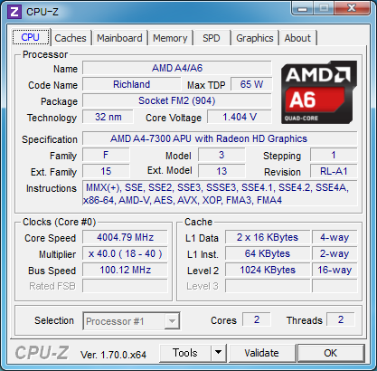 AMDのSocketFM2向けAPU「A4-7300」です。