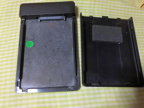 組み立てはネジなどが使われていないため、工具等の必要も無く極めて簡単です。ケースの蓋側にクッションが貼られていますので、やや薄めのドライブでも中で動いたりすることは避けられそうです。