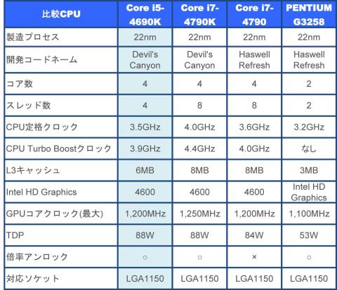 今回 i5-4690Kと比較するCPUのスペックも合わせて貼りました。