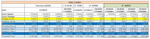 3DMark FireStrikeを比較してみると、3DMarkスコアーはGPUの能力で上がっていきますが、