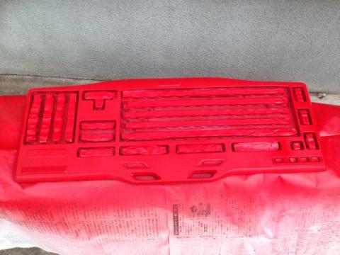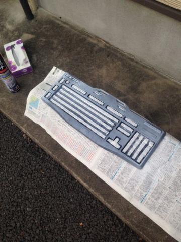 今回特に色が赤なので、黒字に塗ると発色が落ちてしまう。サフェーサーで下塗りです。