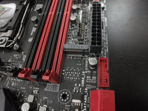 M2は、PCIEx4接続で最大帯域は32GBとなりSATA3.0の6Gを大きく超える帯域で接続可能です。私はまだ、M2.SSDを持っていないので、のちのアップグレードで試してみたいと思います。ちなみM2スロットはメモリの横にあります。