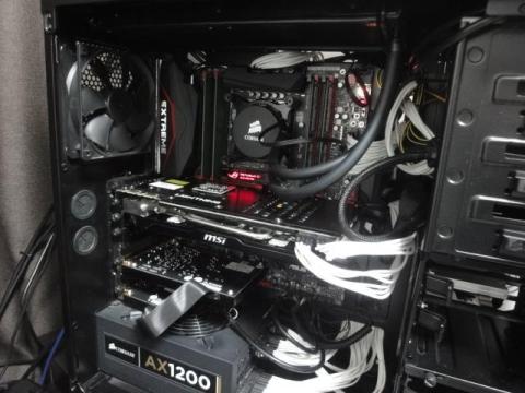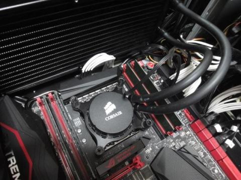 今回は冷却システムとしてCorsair H110を組み込んでみたんですが、CPU周辺で干渉するものもなく組み込みは非常にスムーズにできました。
