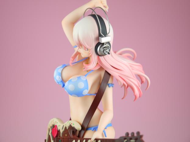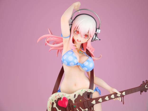 「ロックンロール☆バレンタイン」のイラストを再現した、すーぱーそに子のフィギュア。