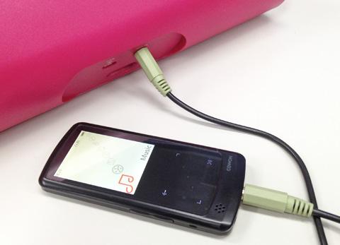 本製品はBluetoothだけでなく3.5mmミニジャック付きのオーディオケーブルによるライン接続が可能なので、Bluetoothに非対応の再生機器なども接続することが出来ます。