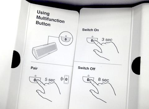 起動時に「マルチファイクションボタン」を3秒間長押しすると本体の電源が「ON」になります。そして5秒間長押しすると「ペアリングモード」になり、8秒間長押しすると電源「OFF」となります。