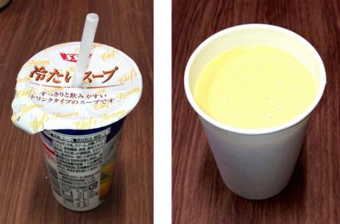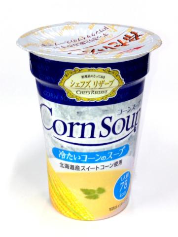 SSKの「冷たいコーンスープ」です。まだまだ、暑い日が続きます。特に、「クールビス」を提唱している我が社では、暑くて大変です。食欲も無くなりますが、「冷たいスープ」は有難いです。
