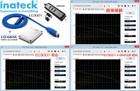 そのHD Tuneでの計測もHUB経由での計測時は同様にエラーが発生しましたが、何度かやると成功したので。
