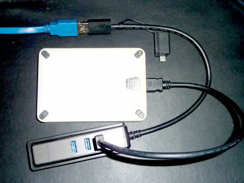 また、EC3001の先に同Inateck製のUSBハブであるHB4008を繋いで、そのHB4008にHDPD-AUT500Wを繋いだ状態でどうなるのかも確認します。