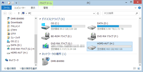 X51にHDPD-AUT500Wを繋ぐと、Hドライブとして認識されました。