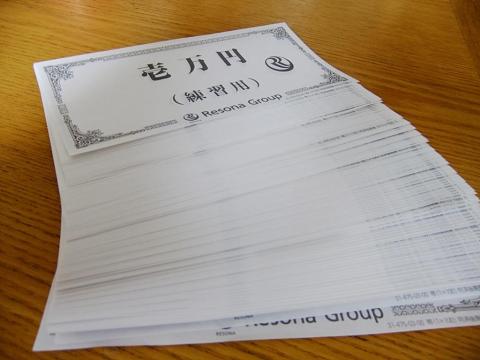 実際に銀行員の練習用として用いられているもので、本物の壱萬円札に似せている様です。