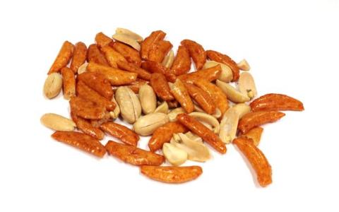 一般的な「柿の種」です。半分くらいは「ピーナッツ」が入っています。特別に辛い訳でもなければ、大きさも「普通」の柿の種です。