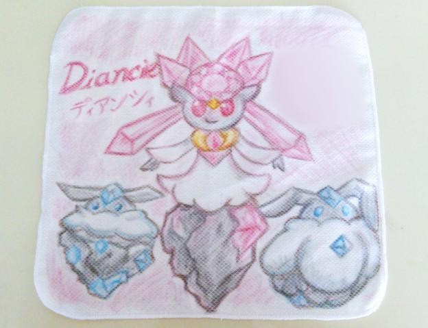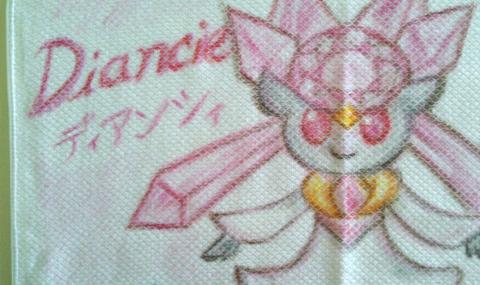 それから、描くものの下描きをクレヨンの薄い色で弱目に描いていきます。下描き完成はこんな感じです。ディアンシーはピンク・メルシーは水色が多く使われいたので、その色を使用。