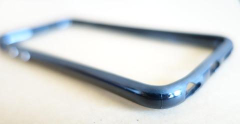液晶保護フィルムに強化ガラスタイプを使用したため、ラウンドガラスのiPhone6ではサイズが小さめとなるが、側面だけでなく、正面・背面の周囲を覆うバンパータイプにしたことで、違和感は感じにくい。