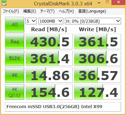 公式値ではRead:422 MB/s Write:344 MB/sで速度が出るようだし、小型で邪魔にならなさそう。