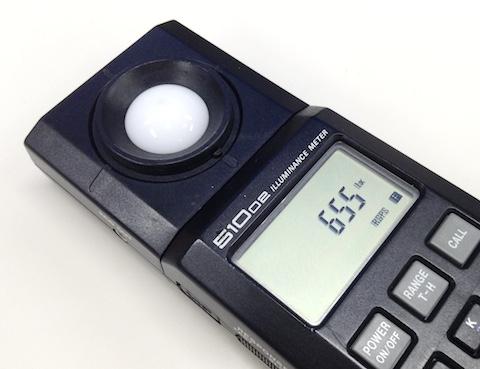 自ら光っているようなモノの照度を測る際は、周囲の光の影響を避けるため、できるだけ周囲を暗くして計測した方が正確に測れます。