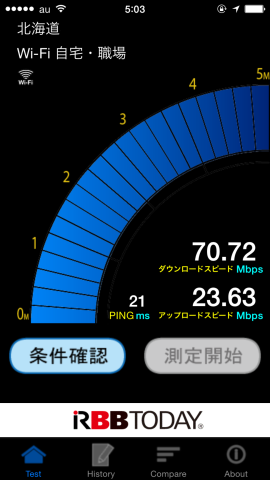 私の環境はVDSLで100Mbps契約なのですが、これだけでるなんて、すごいわ。