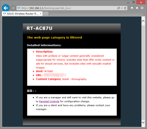 このルータでは、Adult、Instant Message And Communication、P2P and File Transfer、Streaming and Entertainmentといったジャンルの閲覧可否を、接続端末ごとに制御できます。