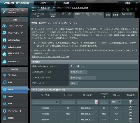 WHS2011やボイスチャットサーバーの為にポートの解放をしないといけないので