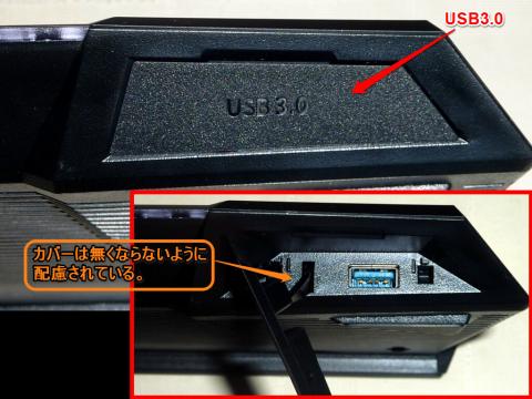 前面右端にはUSB3.0コネクタがカバーの中に。