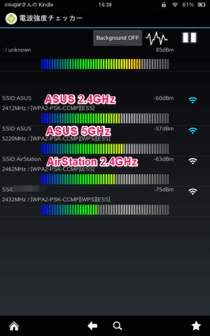 Amazon Kindle Fire HDを用いて、電波強度を調べてみました。