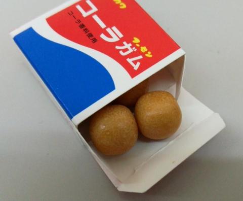コーラガムと言えば、いつもは包み紙に入った1個入りのタイプですが、こいつは4粒入ったマーブルガムであり、普通はガムのバラエティセットに含まれており、単体では販売していないようです。(例外としてドラえもんの柄のタイプがあるようです)