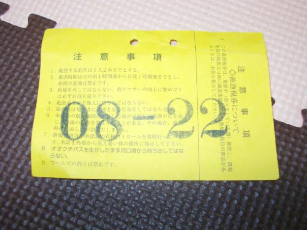 河口湖にてバス釣りをする為に必要な1日限定のパスで