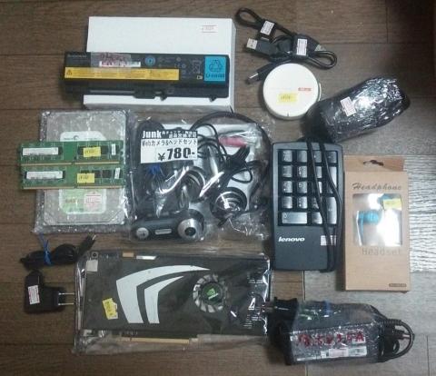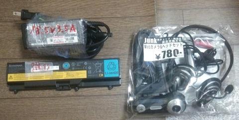 意外とジャンクでも値の張るHPのACアダプターが入っていました。これでジャンクノートが狙いやすくなりますね。ThinkPadのバッテリーは手持ちの機種に合うかわからないので10円として置きました(^^; WEBカメラはもう要らん。