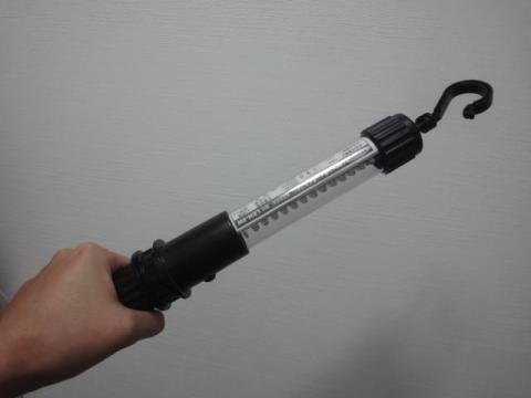 スティック状のハンディライトです。手に持つとこのような感じです。