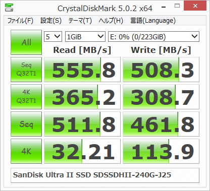 NUC5i7RYH のプレミアムレビューには、Intel SSD 535 Series と RAID 0 を組んだ状態でのベンチを掲載してますが、こちらでは単独ベンチをした結果を。