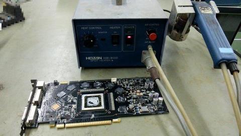 適当にメモリチップを1個30秒程度、GPUを約2分間再リフローしました。