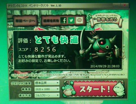 ドラクエ10ベンチ(デフォから解像度のみフルHDへ変更)