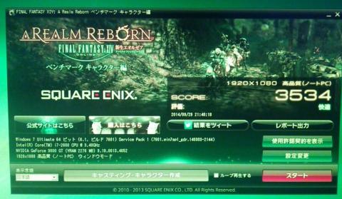FF14新生エオルゼアキャラクターベンチ(解像度のみフルHDへ変更)