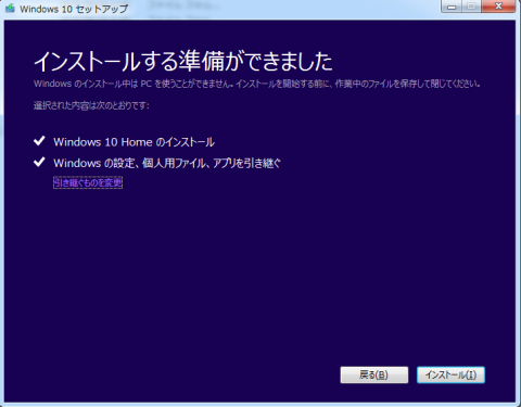 インストールディスクを作成した後にアップグレードに必要な時間は1時間弱でした。