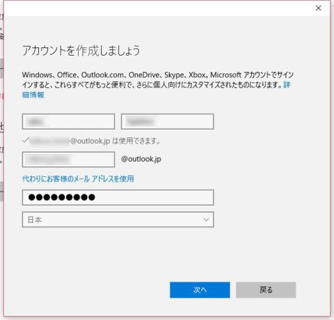 ※ちなみに、「Microsoftアカウント」を利用しない「ローカルアカウント」を作るなら、