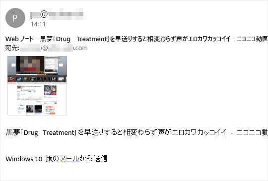 これは、Surface から、メインPC(Win10)にWebノートをメールで送信したものです。